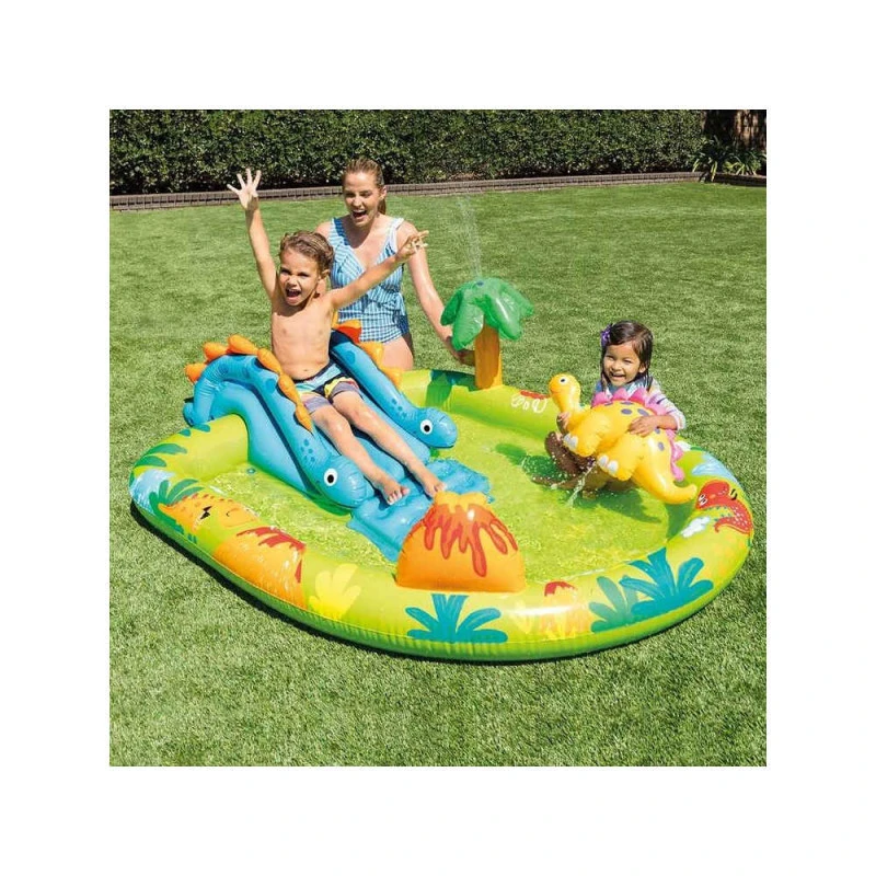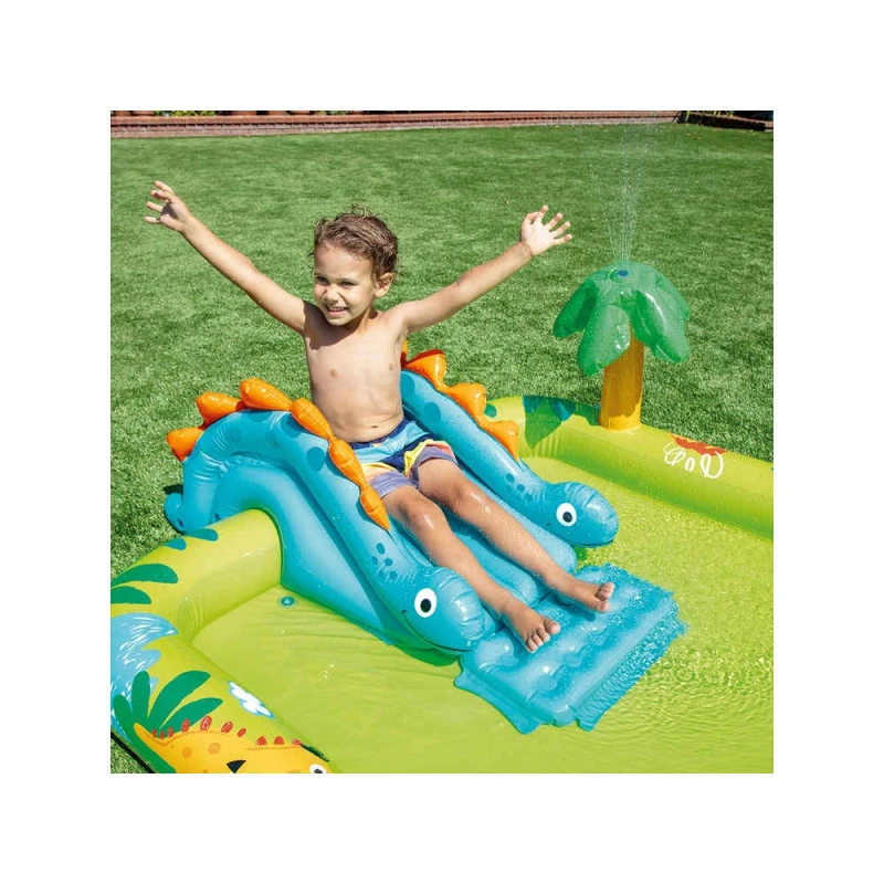 - Inclus : Toboggan aquatique, fontaine, petit dinosaure gonflable