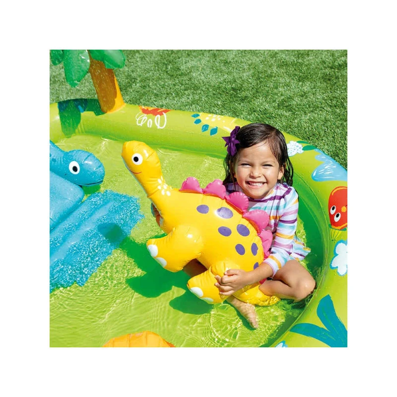 L’aire de jeux petit dino Intex est idéale pour les enfants à partir de 2 ans. Eveillez la curiosité de vos bambins et faites les voyager dans le monde des dinosaures grâce au design coloré de cette aire de jeux gonflable.