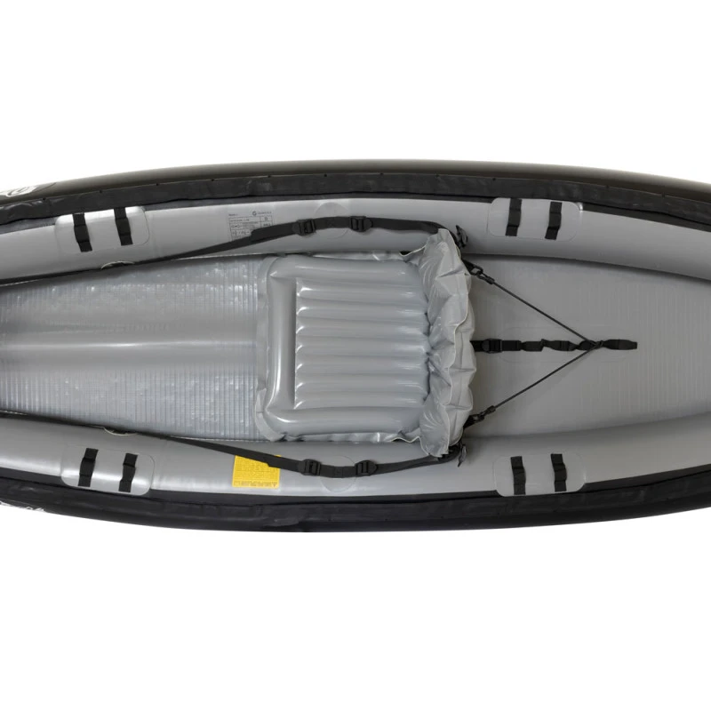 Il dispose une quille gonflable intégrée dans le panneau Dropstitch. Une autre innovation : les cale-pieds réglables depuis la position assise dans le bateau sont également produits en Dropstitch