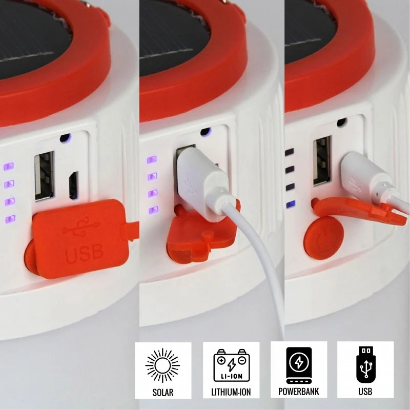 De plus, la lampe offre la fonctionnalité de recharger un téléphone grâce à sa batterie intégrée de 2400 mAh.